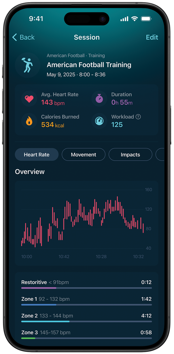 Not just for the highlight reel, but for the athlete within. Beneath the surface, a network of smart sensors works to track your heart rate, movement, and impacts.